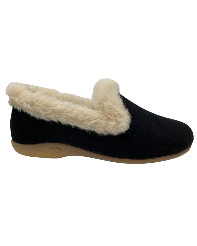 Girasol est une jolie pantoufle chic et toute en sobriété avec son joli collier en fourrure.