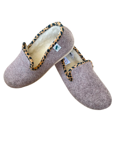 Sa bordure léopard apporte une petite touche de folie, et son intérieur fourré en pure laine enveloppe vos pieds de douceur et de chaleur…