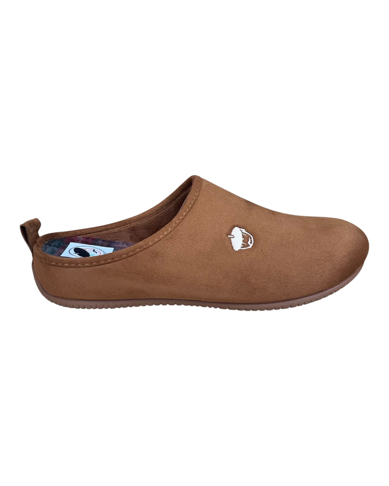 Ce chausson de type mule en nubuck, enveloppe vos pieds dans un confort absolu.